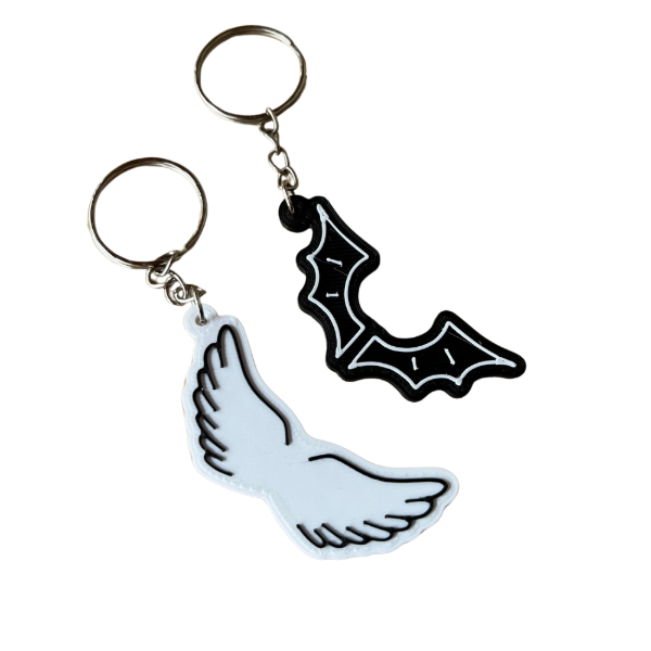 Anillos de Duki por 2 unidades: mitad ángel y mitad diablo + Llaveros Alas Duki por 2 unidades: uno de ángel y uno de diablo. Stickers de regalo!